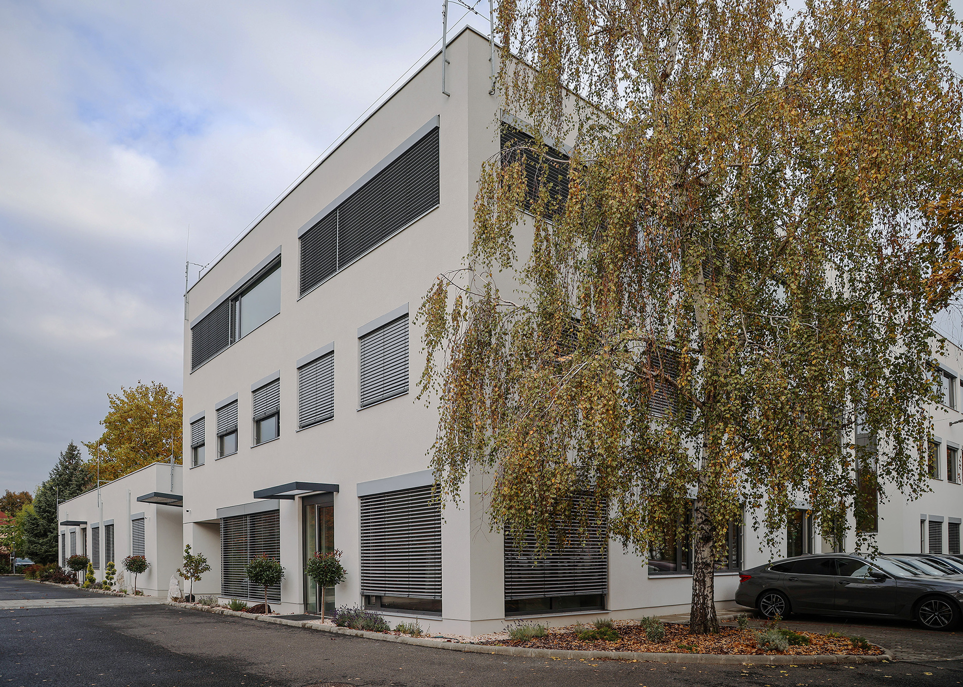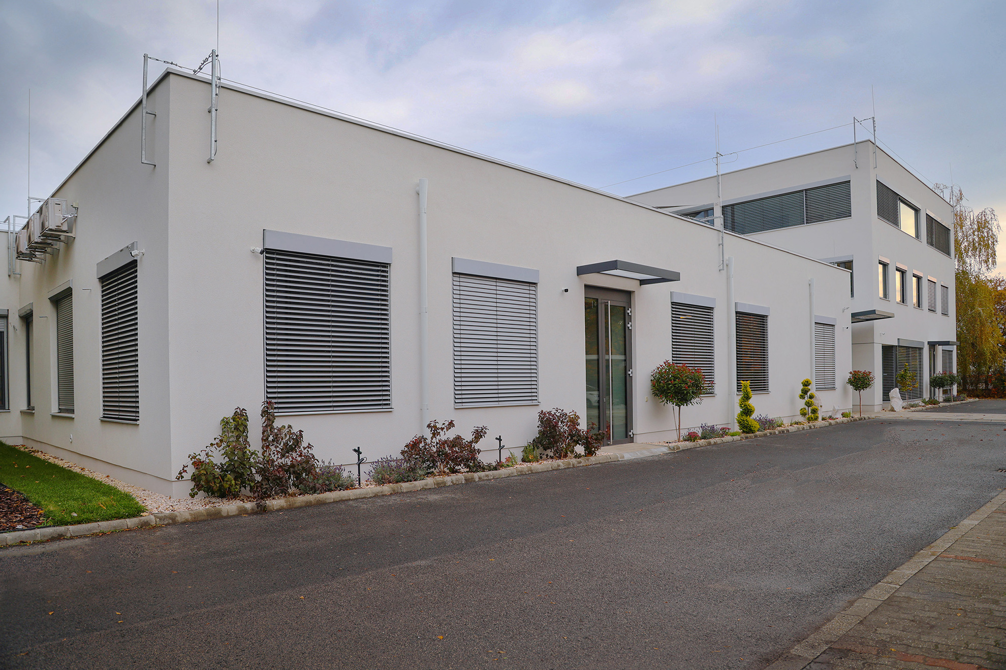Alumínium nyílászárók, függönyfalak, üveg korlátok és zsaluziák tervezés, gyártás és beépítés a Luminis Kft. irodaház felújításánál.